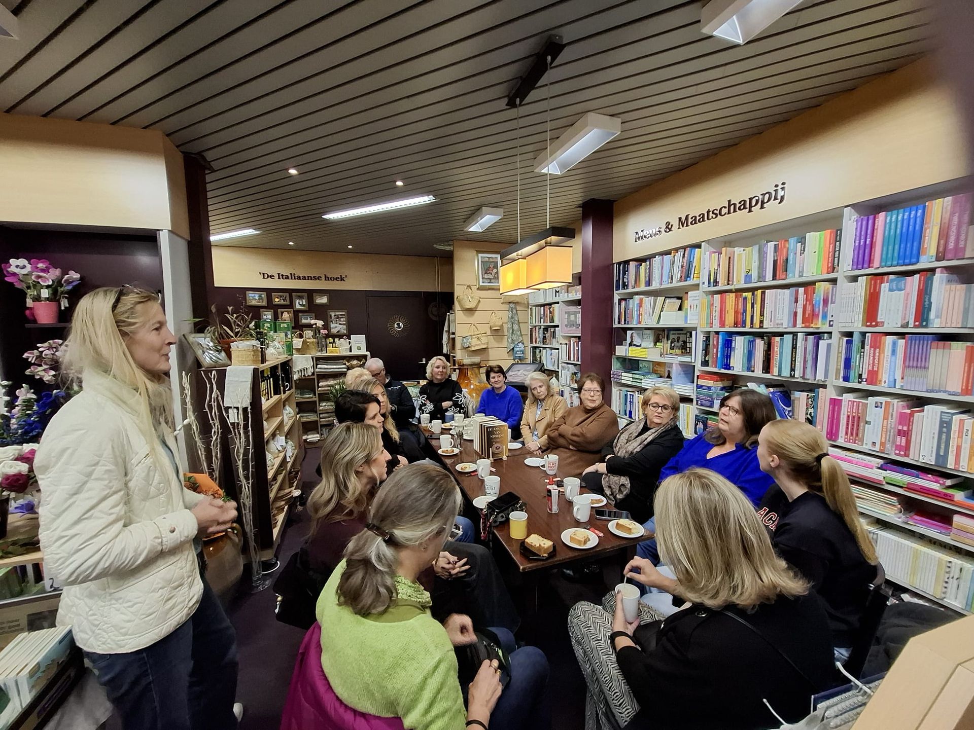 Vanmorgen heb ik, onder het genot van een warme kop koffie of thee, mijn boek 'De amulet van Nissrine' mogen presenteren bij boekhandel Wagner. Karin en Els hadden heerlijke cake en boterkoek gebakken, waardoor de sfeer meteen huiselijk en gezellig was.