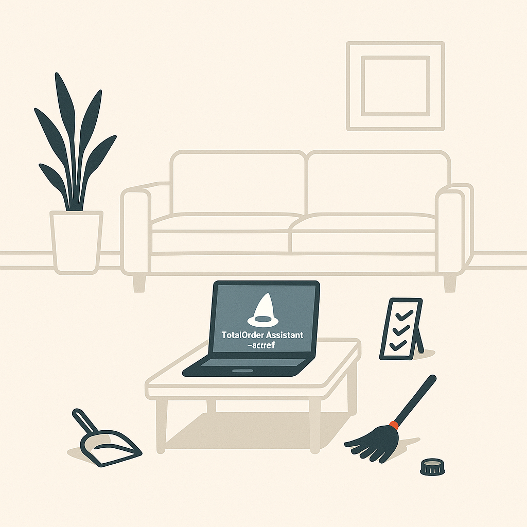 In de achtergrond knippert een klein icoontje: TotalOrder Assistant – actief.